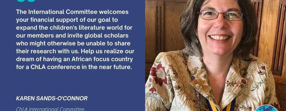 The Children's Literature Association (ChLA) International Committee is participating in GivingTuesday today, the global day of unity and giving. As you know, our committee actively pursues the internationalization of North American children's literature research. The International Committee is directing its efforts towards opening up more space for scholars and students of youth literature from the global south to connect with the North American and European ChYALit literature community. As part of these efforts, we would like to host speakers from the global south this coming year to deliver talks about their research to the members of ChLA. We would like to raise funds during this time to honor the speakers for their knowledge, time, and energy. Your support during this GivingTuesday will go a long way in helping us establish a community with researchers in the global south and engage meaningfully with their work.